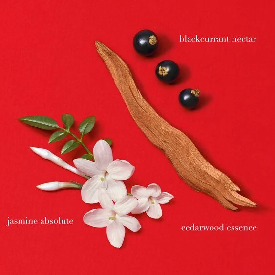 SI PASSIONE s’ouvre sur un nectar de cassis, associé à une poire pétillante et joyeuse. En son cœur, la rose sensuelle et l’absolu de jasmin reflètent la force de la féminité, et sont contrastés par la maturité du bois de cèdre